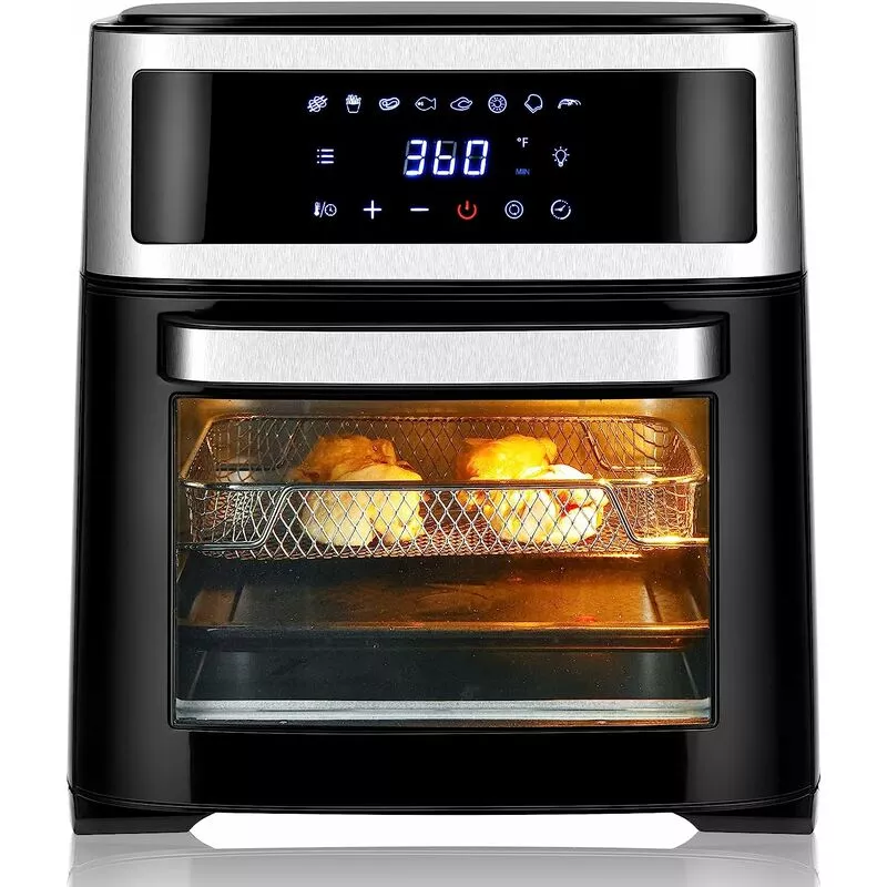 Atributos: Diseño 8 en 1 para uso versátil- Nuestro horno multifuncional de aire tiene 8 menús preajustados como alitas de pollo, patatas fritas, carne de cerdo, pescado, carne de pollo, fruta secada, pan y gambas. Puedes preparar muchos platos deliciosos según tus gustos personales. Comida sana con menos aceite- Utilizando la tecnología de circulación rápida del aire a 360° y con un motor de 1700 W, nuestro horno de aire reduce la grasa para poder comer más sano. Además, la temperatura se puede regular entre 50°C y 205°C, así puedes preparar comida crujiente en el exterior sin utilizar aceite. Capacidad de 13 L para uso familiar- Con la capacidad de 13 L, esta freidora de aire es excelente para familias grandes, amigos e invitados. Puedes observar la cocción de la comida gracias a la ventana transparente. Además, la empuñadura permite coger cómodamente la comida y en toda seguridad. Las almohadillas antideslizantes hacen que sea más estable sin que oscile. Panel de control práctico