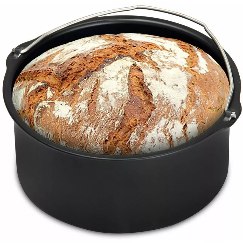 Delicioso pan horneado! Hornee en la freidora de aire caliente con el práctico recipiente de pan con revestimiento antiadherente. El recipiente de pan se usa en una de nuestras freidoras de aire caliente de la Marca Monzana. Ventajas del producto: 1,2 litros de capacidad Para hornear pan o pasteles en las freidoras de aire caliente de la Marca Monzana Con revestimiento antiadherente contra quemaduras Ayuda práctica - manejo fácil Mango práctico Apto para lavavajillas Apto para calentar alimentos o similares Datos técnicos: Diámetro: 17 cm Altura: 7,5 cm. Capacidad: 1,2 litros Material: Metal Nota: para hornear pan o pasteles en una freidora de aire caliente de la marca Monzana. Incluye: 1x Recipiente para hornear pan