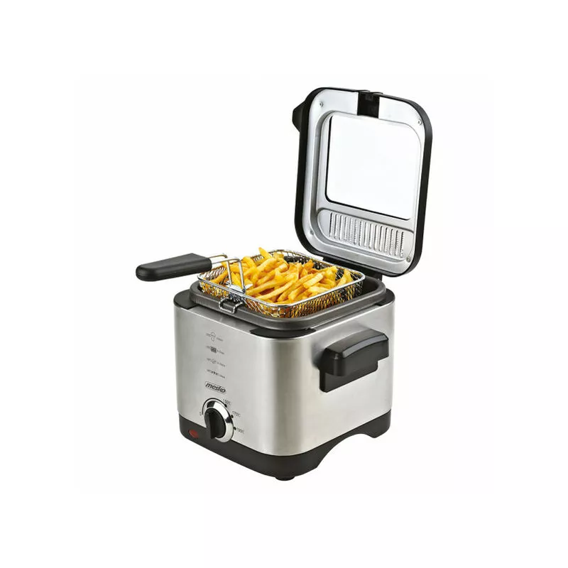 Freidora de reducido tamaño con lo que ocupara poco espacio en su cocina. Con una potencia de 900W, esta equipada con control de temperatura, luz de control, carcasa de acero inoxidable y una cubierta con ventana transparente para controlar la elaboracion. Esta tapa se abre gracias a un boton de apertura. Incluye cesta en acero inoxidable con mango plegable. -Datos Tecnicos- Color:Negro/Niquel | Peso Neto:1860 gr | Peso Bruto:2260 gr | Medidas embalaje:23x28x28 cm | Dimensiones (alto x ancho x fondo):21x27x22 cm | Material:Acero inoxidable/Policarbonato/Metal | Voltaje:220-240 V | Tipo de instalacion:En superficie | Uso (Domestico/Profesional):Domestico | Certificado CE:true | Certificado Reciclaje:true - EAN: 5902934830829