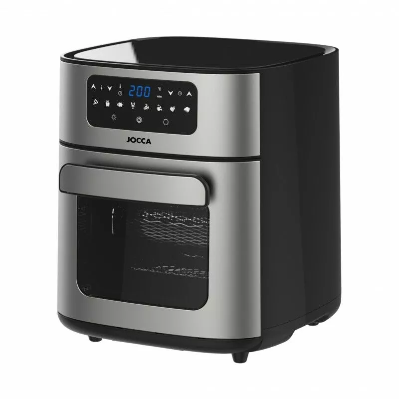La freidora sin aceite de 10L de Jocca te permitirá cocinar infinidad de recetas de forma sana y deliciosa. Solo es necesario usar una cucharada de aceite para todo el cocinado, evitando así que los alimentos queden con demasiadas grasas, pero consiguiendo un efecto crujiente y de cocina igual al de toda la vida, ¡o incluso mejor! Además, esta opción te saldrá mucho más económica que el cocinado tradicional: usarás menos aceite, y gastarás menor energía que con un horno. Su sistema de aire caliente evita humos, olores y apenas ensucia. Solo tendrás que sacar la cubeta y la rejilla que tiene, y limpiarla como cualquier sartén normal. ¡Lo mejor! Con su temporizador y apagado automático podrás programarla y olvidarte de ella... ¡sin sus sustos! Caracteristicas: -Cocina alimentos de forma más saludable sin grasas añadidas. -Gran capacidad e uso versátil: Fríe, Ruste, Hornea, Calienta. -Añade sólo una cuchara de aceite. -Pantalla táctil con 8 programas predefinidos. -Bandeja recoge gotas